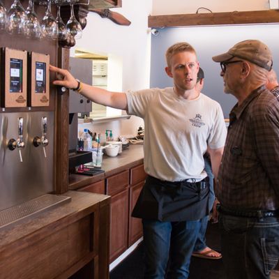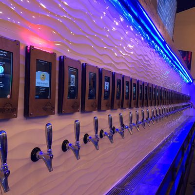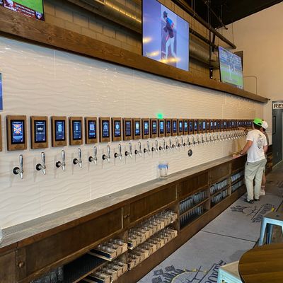 The atmosphere is centered around an interactive beverage experience where guests can explore a wide range of taps at their own pace. It feels like a lively social hub designed for enthusiasts to sample various pours.ambiance_potoo