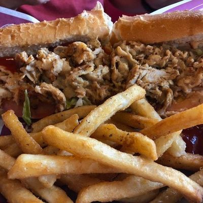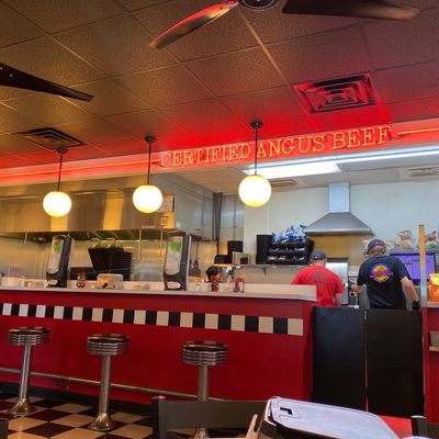 Casual 50s-themed diner with a varied menu featuring cheesesteaks, burgers, and sandwiches, known for its excellent fries and complimentary ice cream.