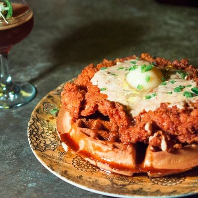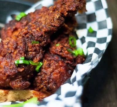 The menu centers on delicious fried chicken and various wing styles. Pair your meal with a selection from the full cocktail bar.food_potoo