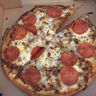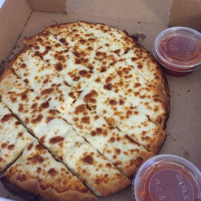 Convenient, casual pizza place inside a gas station offering tasty, if not exceptional, thin-crust pies and a small salad bar.