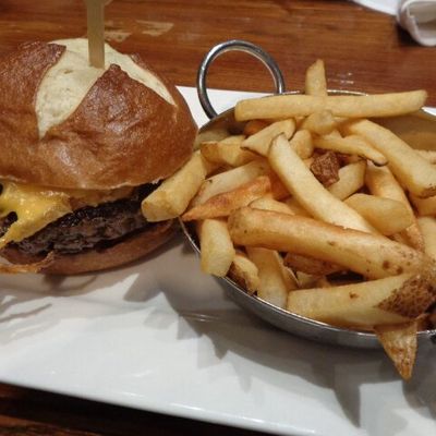 Casual American bar and grill in a hotel casino, offering burgers, fries, and other bar fare with a patio setting.