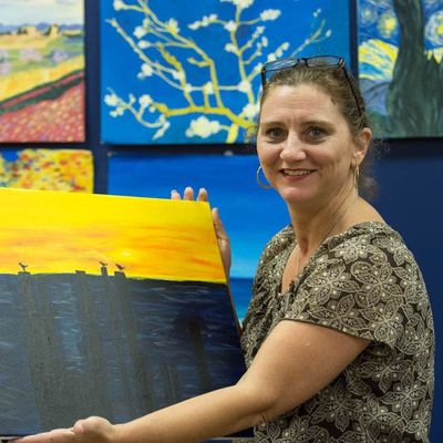Art studio offering a unique creative experience. Participants can choose from a wide array of paintings to replicate or create their own designs with guidance from attentive staff.