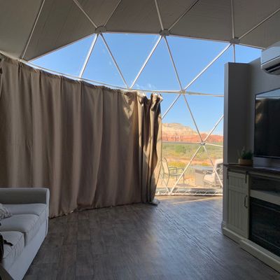 Bryce Glamp And Camp offers a unique glamping experience with attractively furnished and spacious domes. Each unit is well-equipped with amenities like air conditioning, indoor fireplaces, and outdoor fire pits, providing a comfortable and modern camping adventure.