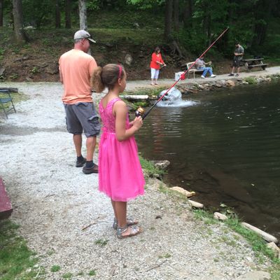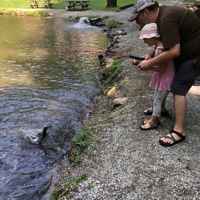 Buck Creek Trout Farm offers a fun and accessible fishing experience for all ages. Visitors can enjoy catching rainbow trout, with provided poles, bait, and cleaning services available.