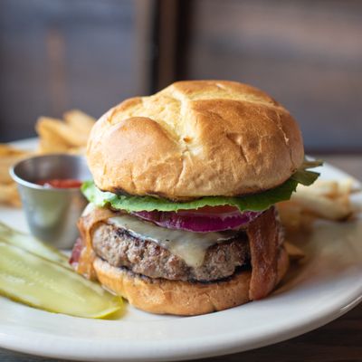 The space exudes a warm, traditional New England charm. It feels cozy and welcoming, making it a comfortable spot for a classic steakhouse dinner.ambiance_potoo