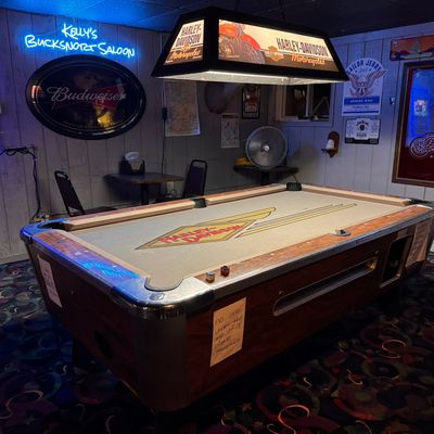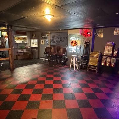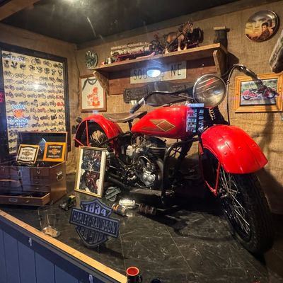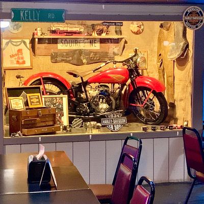Dimly lit, classic local pub with a unique name, featuring burgers and other pub fare, a rare motorcycle, and sometimes inconsistent service.