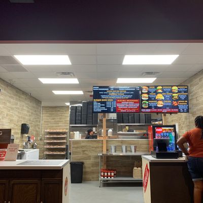Fast-food restaurant known for its fresh, gourmet burgers, crispy fries, and delicious milkshakes, offering a family-friendly atmosphere and friendly service.