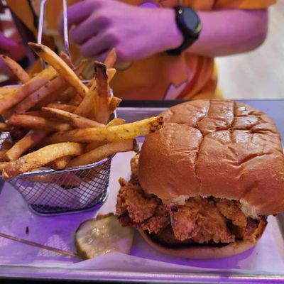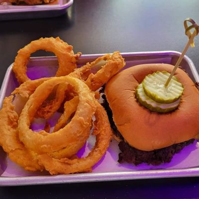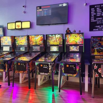 Family-friendly arcade bar with American pub fare, pinball, and hourly gaming console rentals.