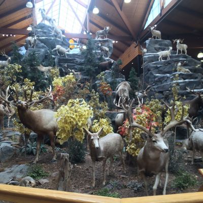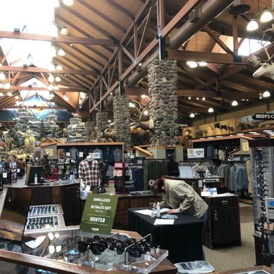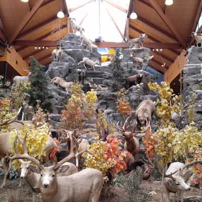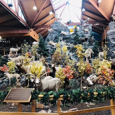 Retail chain specializing in outdoor sporting goods, hunting, fishing, and camping equipment. The store features extensive displays of taxidermy, including impressive dioramas and live aquariums, offering an engaging experience beyond shopping.