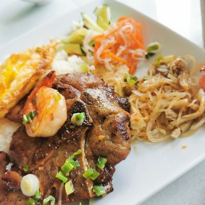 Cash-only Vietnamese restaurant with authentic cuisine and excellent pho, located in an unassuming strip mall setting; expect friendly service and delicious, fresh food.