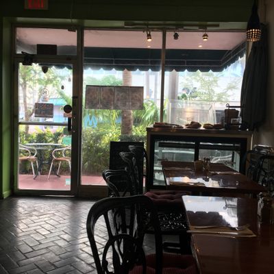 The atmosphere is simple and unpretentious, offering a relaxed setting for a morning meal. The outdoor tables provide a pleasant spot to sit with a pet while enjoying the local scenery.ambiance_potoo