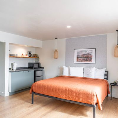 Capitol Reef Inn & Cafe offers a unique lodging experience with vintage-inspired rooms that evoke a bygone era. The attached cafe serves delicious American cuisine, with notable mentions of their pies and breakfast dishes.
