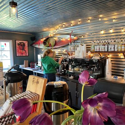 Cozy cafe offering bagels, coffee, and smoothies with a friendly atmosphere and locally sourced goods, perfect for a quick stop or relaxing break.