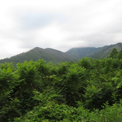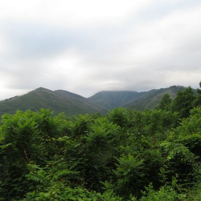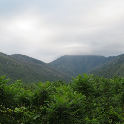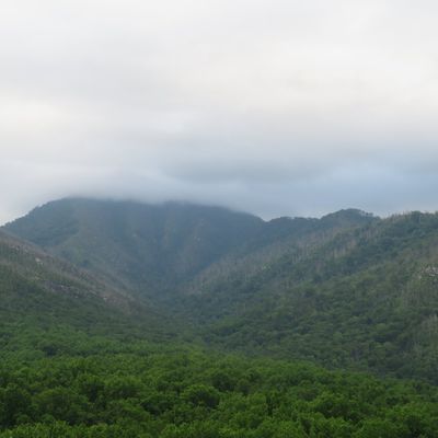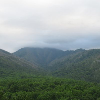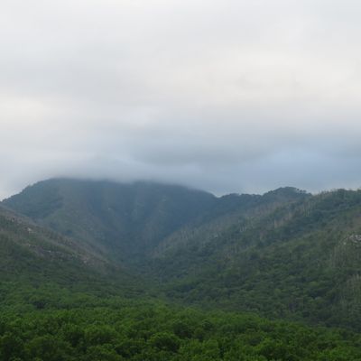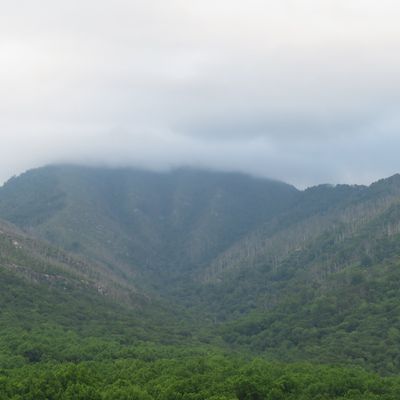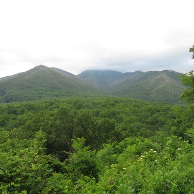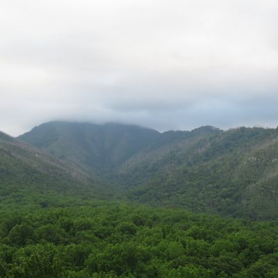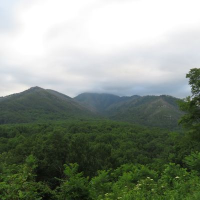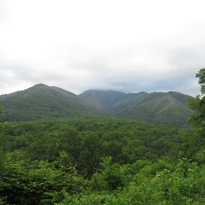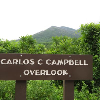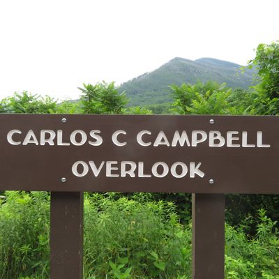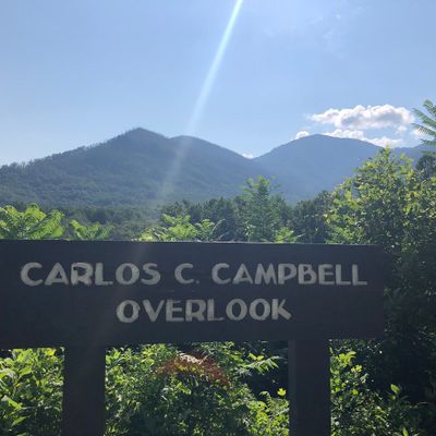 Designated pull-off along a scenic mountain road. It offers expansive views of the surrounding mountain ranges, including a notable perspective of Mount LeConte.
