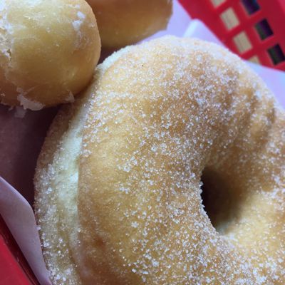 Small, independent shop offering fresh, customizable yeast-raised donuts and apple fritters in a strip mall setting.