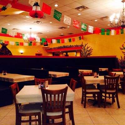 Large Mexican restaurant with a spacious outdoor area offering generous portions, good margaritas, and generally positive reviews.