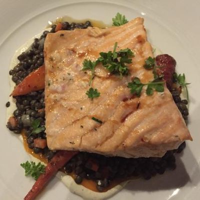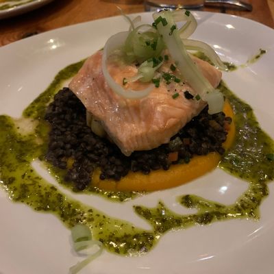 The menu features a wide variety of meat and fish dishes sourced from local vendors. The selection includes excellent wines available by the glass to complement the seasonal fare.food_potoo