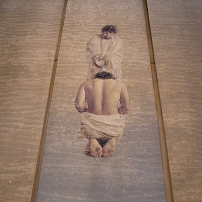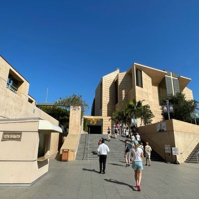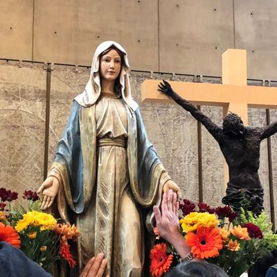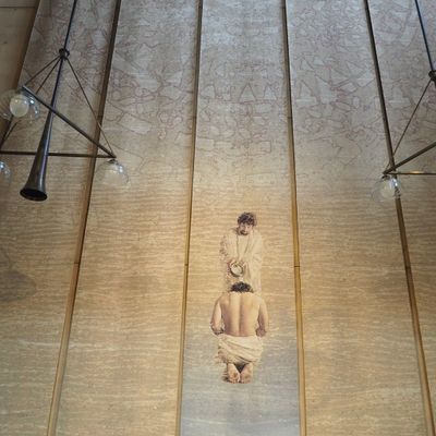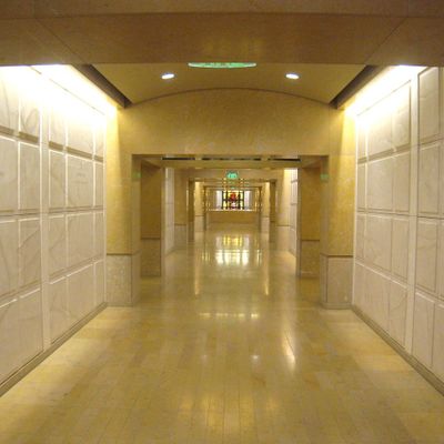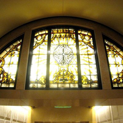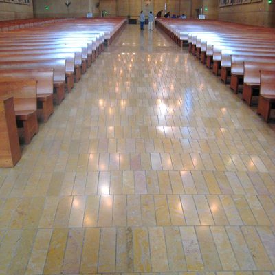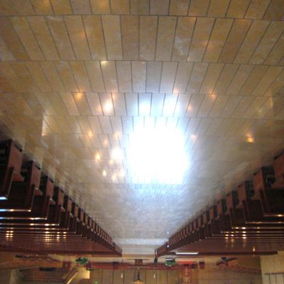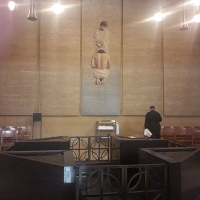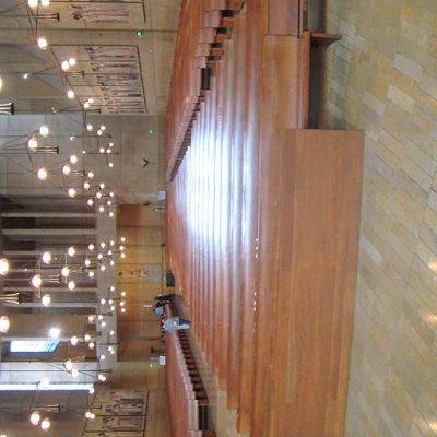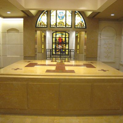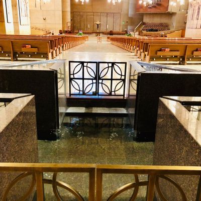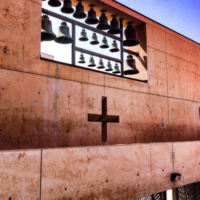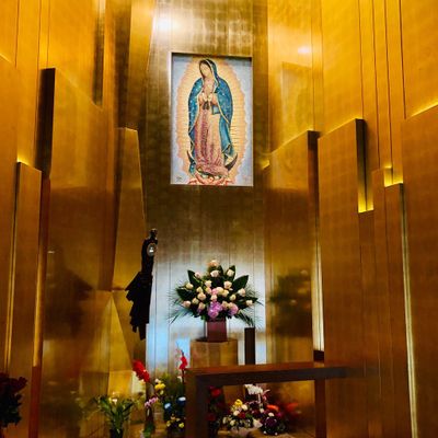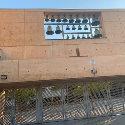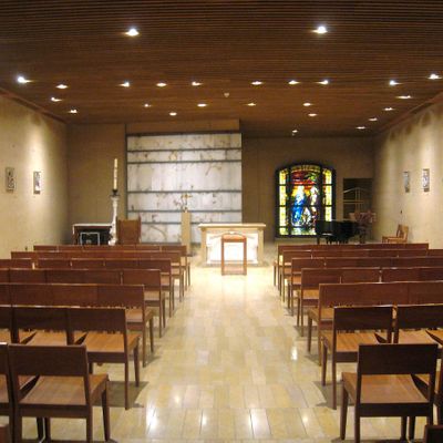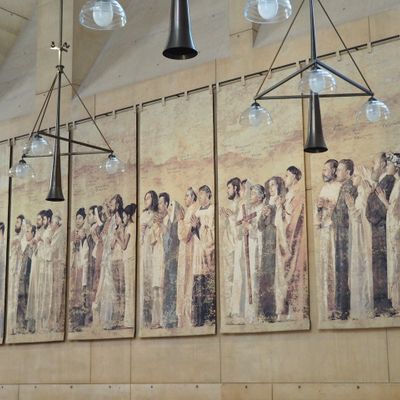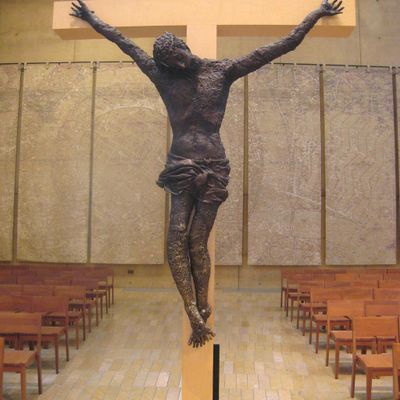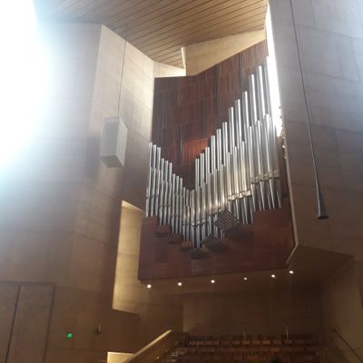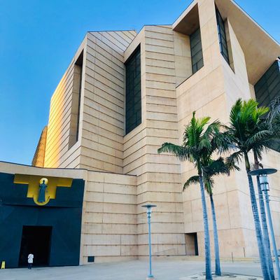 Modernist architectural masterpiece, completed in 2002. It features a striking postmodern design with expansive grounds, alabaster windows, and a blend of traditional and contemporary sacred art.