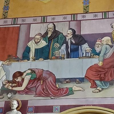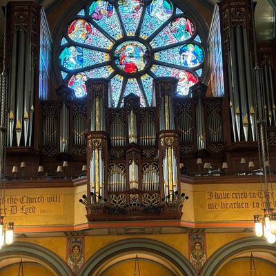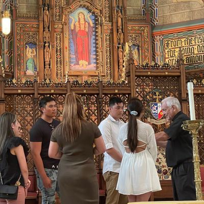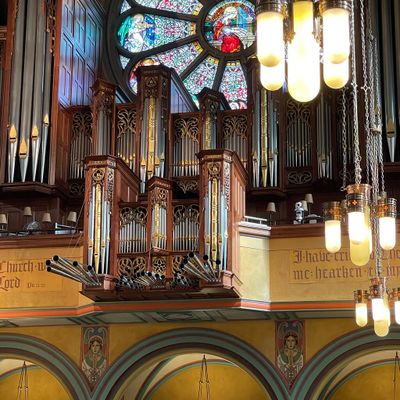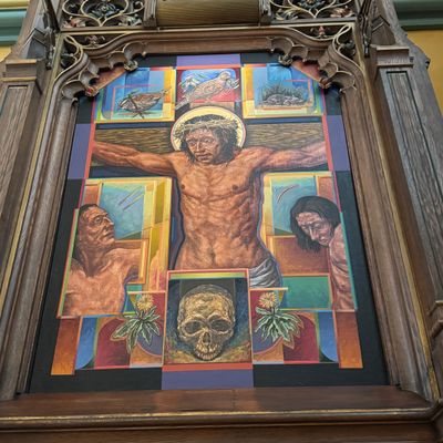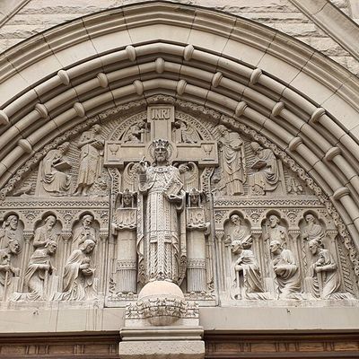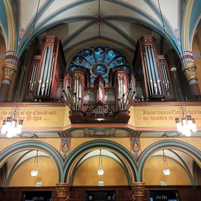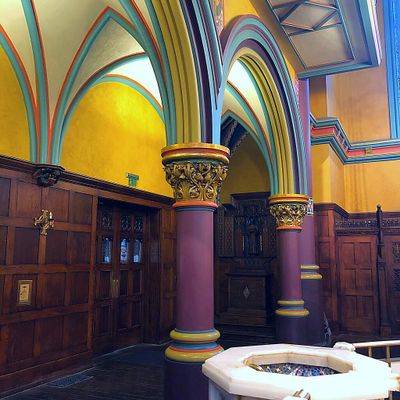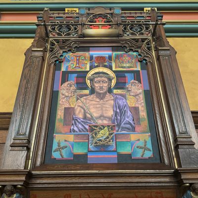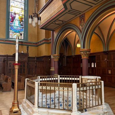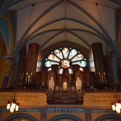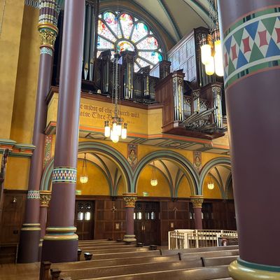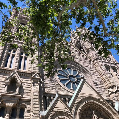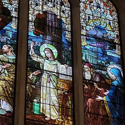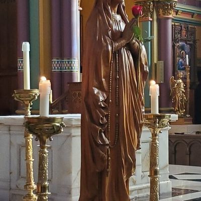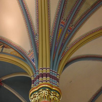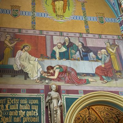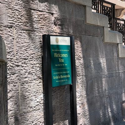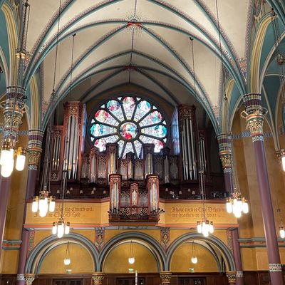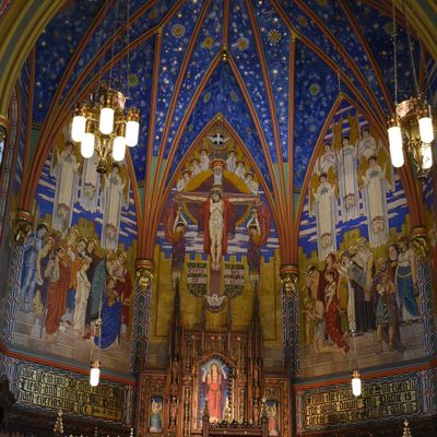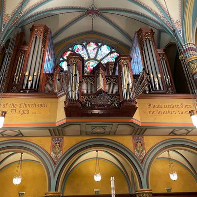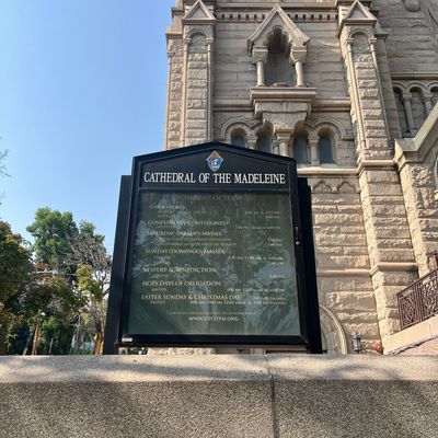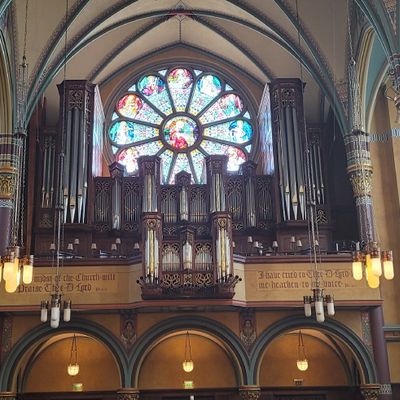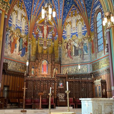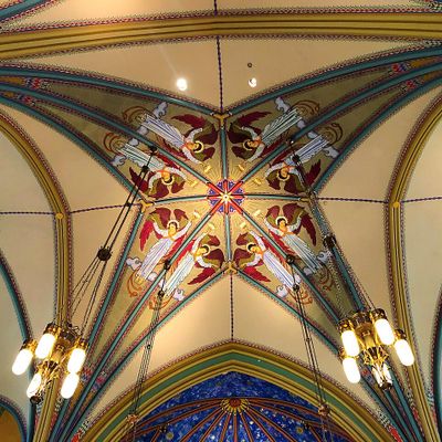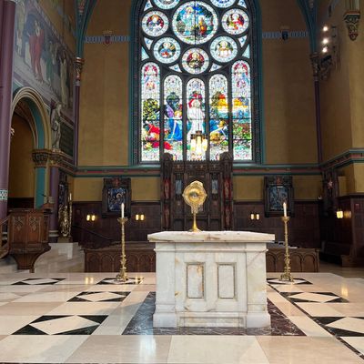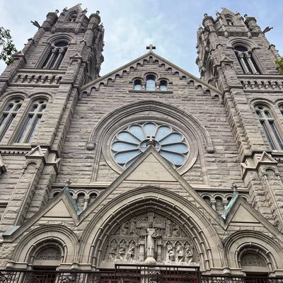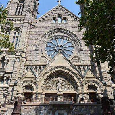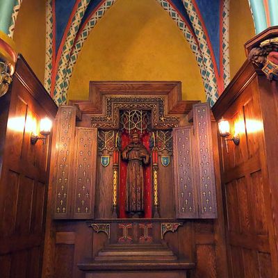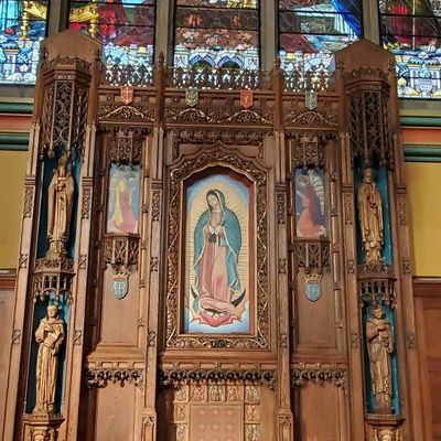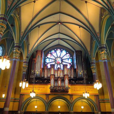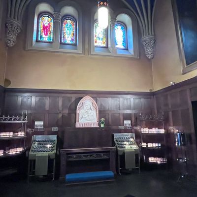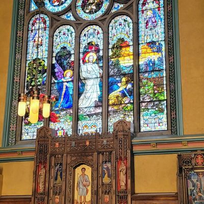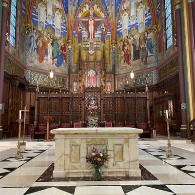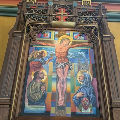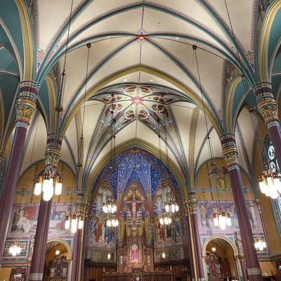 Historic Roman Catholic cathedral dating back to 1909. It features a striking neo-Romanesque exterior and a Gothic interior adorned with colorful murals, brilliant stained glass windows, ornate statues, and a significant baptismal font. long_description