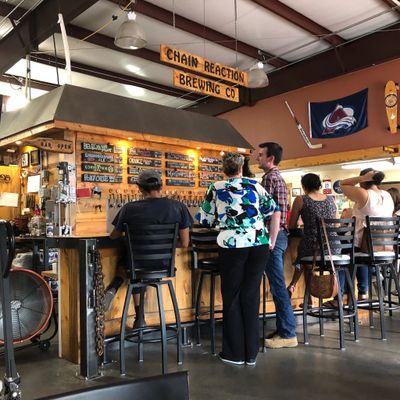 Local brewery offering a unique selection of inventive craft beers, including fruit-infused and spiced varieties. It features ample indoor seating and outdoor tables, creating a rustic Colorado vibe.