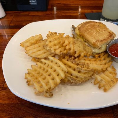 Trendy sports bar with a large TV selection, upscale feel, and a menu featuring elevated bar food like sliders and unique appetizers, plus a rooftop bar.