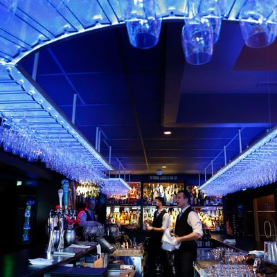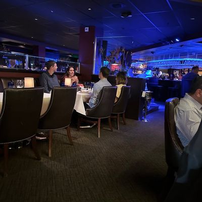 The atmosphere is sophisticated and polished, offering an upscale dining environment. Sitting at the bar provides an energetic, lively experience that contrasts with the more formal dining area.ambiance_potoo