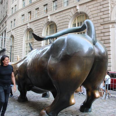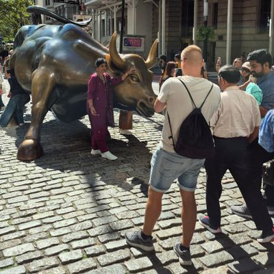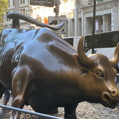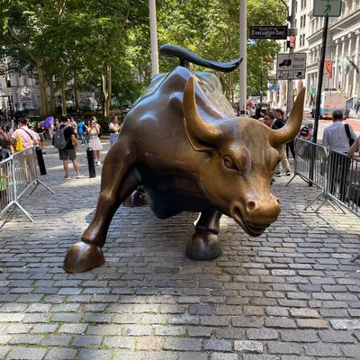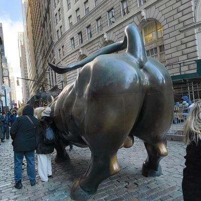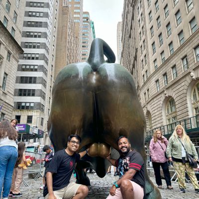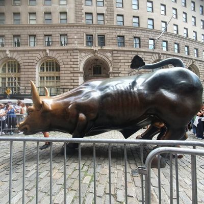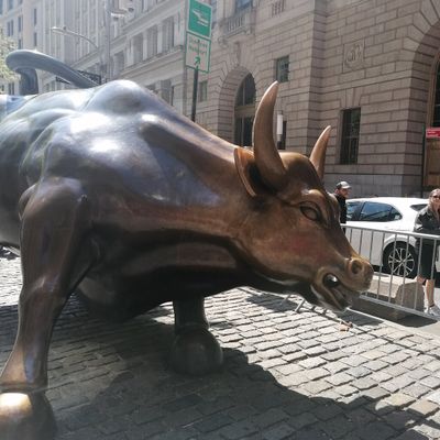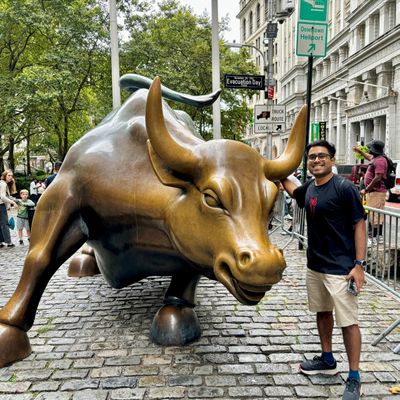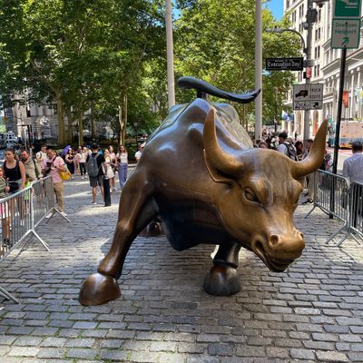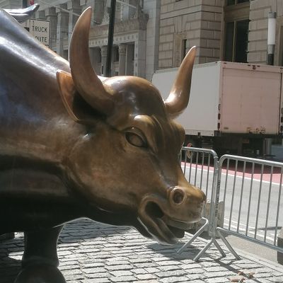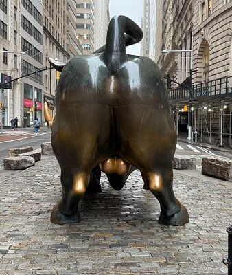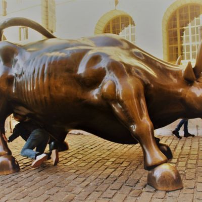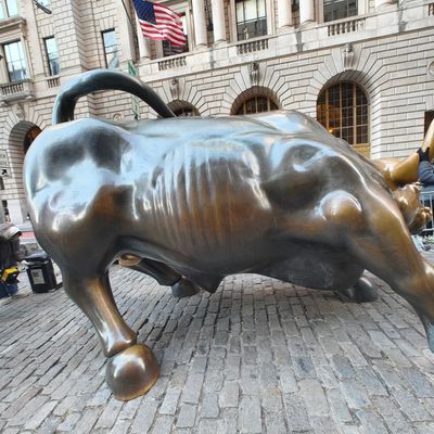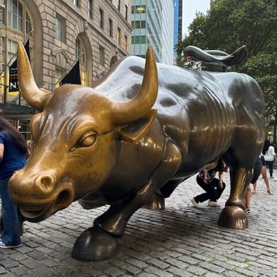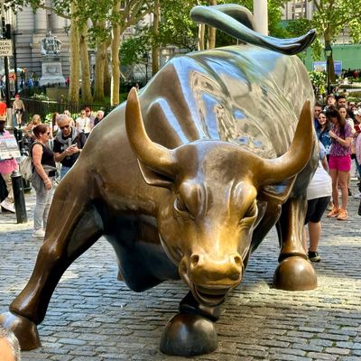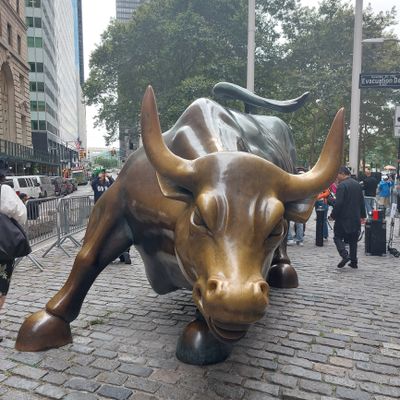 The sculpture was originally created by Arturo Di Modica as a piece of 'guerrilla art' to symbolize economic prosperity. Installed in 1989, this 7,100-pound bronze bull has become one of the most recognizable symbols of Wall Street.story_potoo
