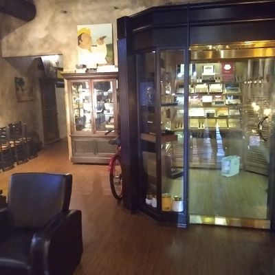 Relaxed cigar bar and wine shop with a comfortable lounge, offering a good selection of cigars, wines, and beers in a lively downtown location.