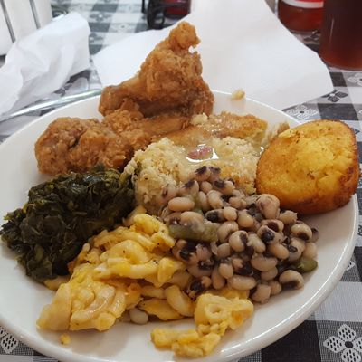 The atmosphere is that of a classic, busy Southern diner that stays lively during the Sunday lunch rush. It provides a welcoming, casual setting for a hearty meal.ambiance_potoo
