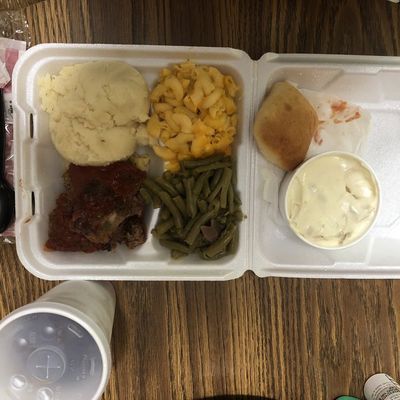 Enjoy classic southern comfort food like fried chicken and creamy banana pudding from the buffet line. The menu features a wide selection of hearty dishes and a fresh salad bar.food_potoo