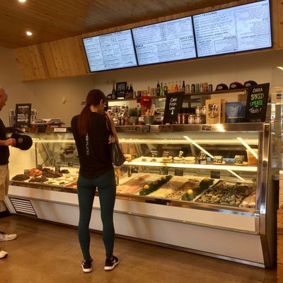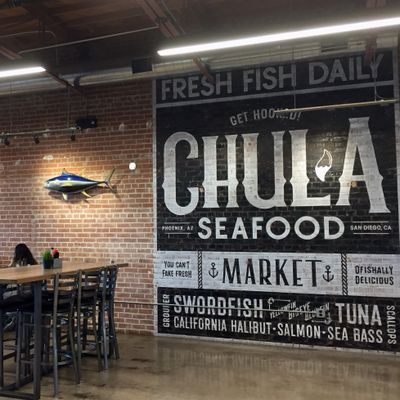 The atmosphere is efficient and unpretentious, centered around a functional strip mall setting that functions as both a retail fish market and a casual eatery. It feels like a high-quality coastal market brought to the desert.ambiance_potoo