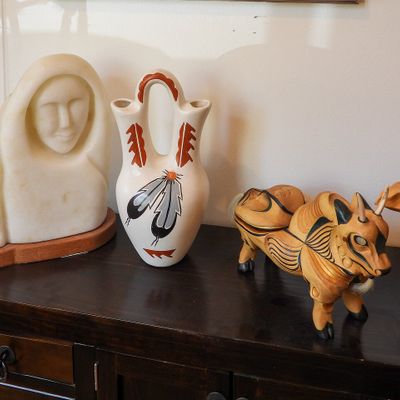 Beautiful space showcasing stunning artwork and unique jewelry. The proprietor, an artist and musician, offers a wide variety of creative pieces, including metal sculptures and artistic photography.