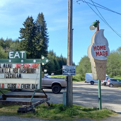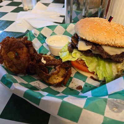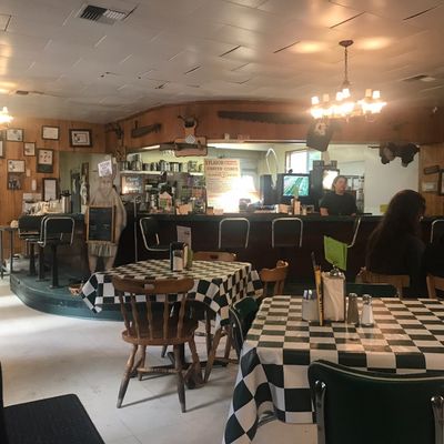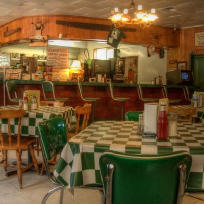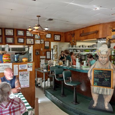 Classic highway diner known for its giant burgers and homemade ice cream, offering a full menu and a relaxed atmosphere.