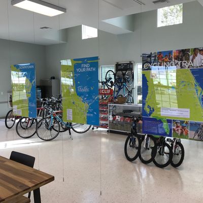 Bicycle shop located within a welcome center. They offer a range of services including bike sales, rentals, and repairs.