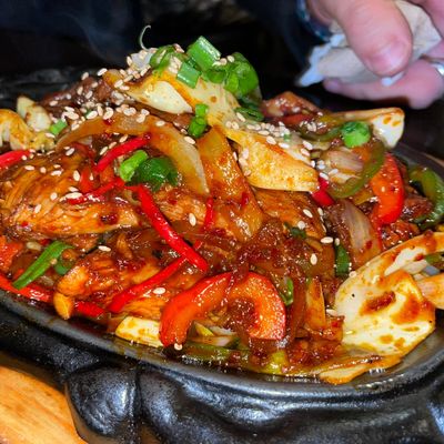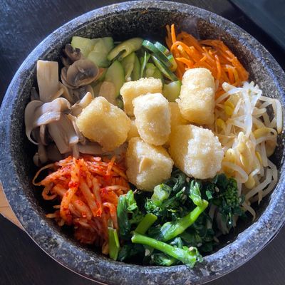 Charming Magazine Street Korean restaurant offering BBQ, bibimbap, and other Korean dishes, plus vegan options; some tables feature cook-at-table grills.