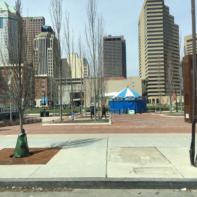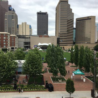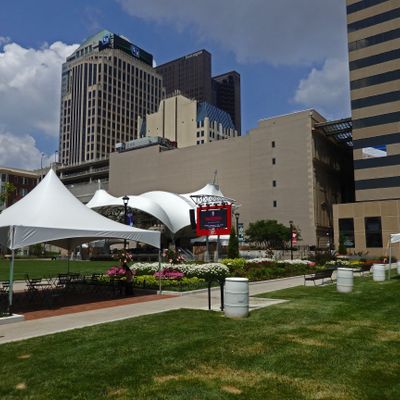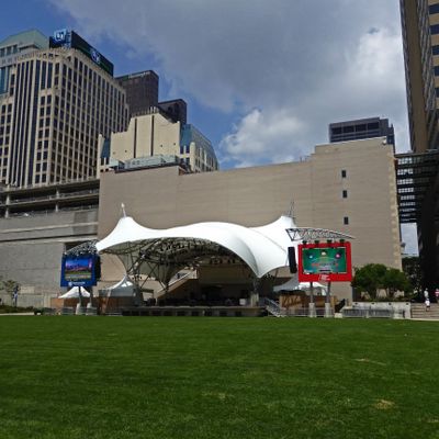 This site holds significant history as the former location of a major downtown shopping mall and several large department stores. It has since been transformed into a central public green space and event venue for the community.story_potoo
