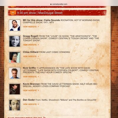 $25 Cover Charge. Parties larger than 8 are not allowed in the MacDougal Street location. This is a late night show for April 17th.