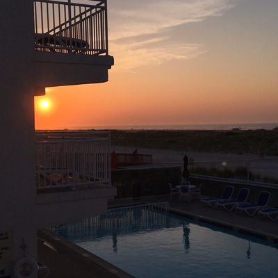 Beachfront property offering direct access to the sand and ocean. It features a pool and grilling area, with rooms that include small kitchenettes.