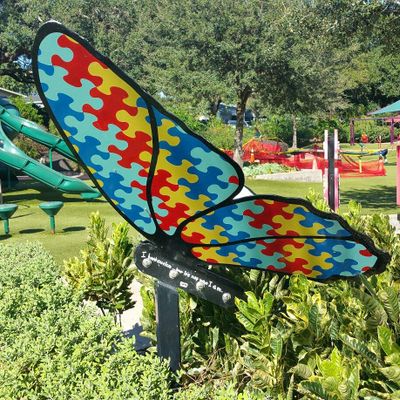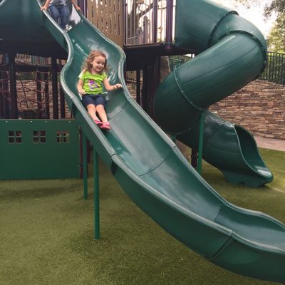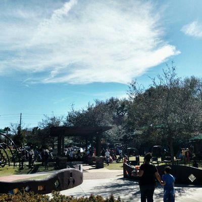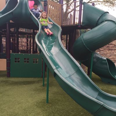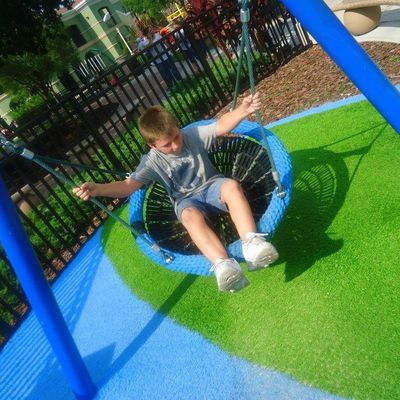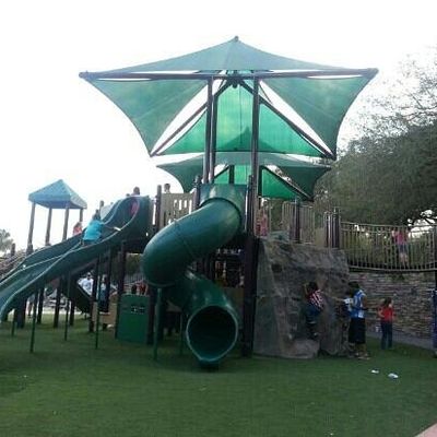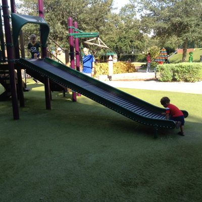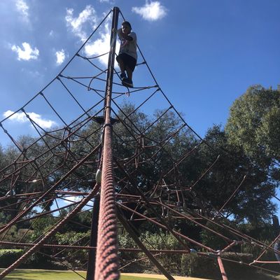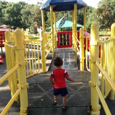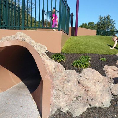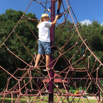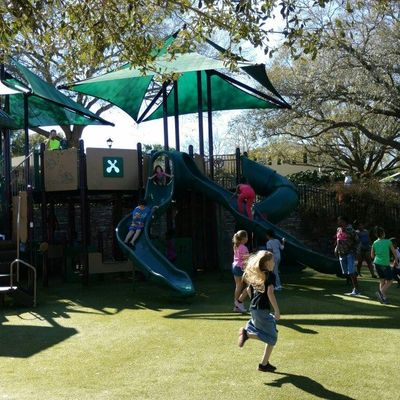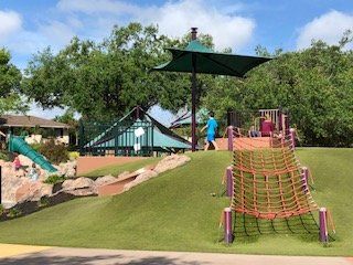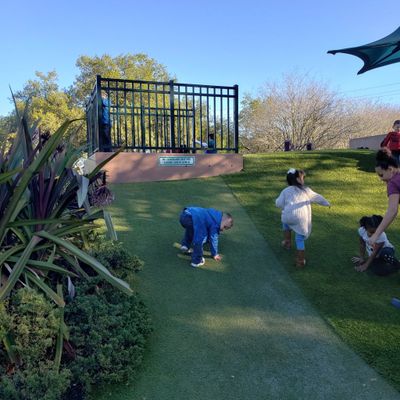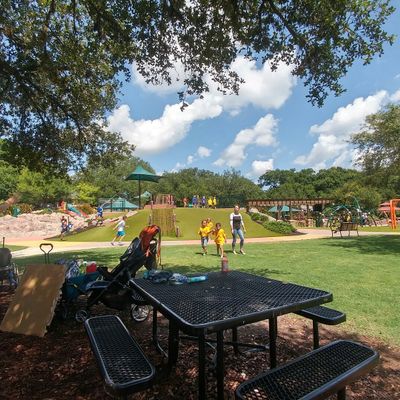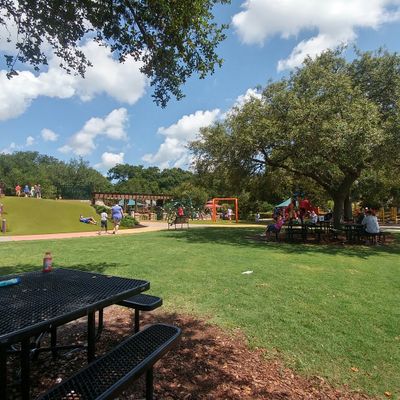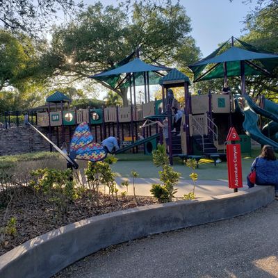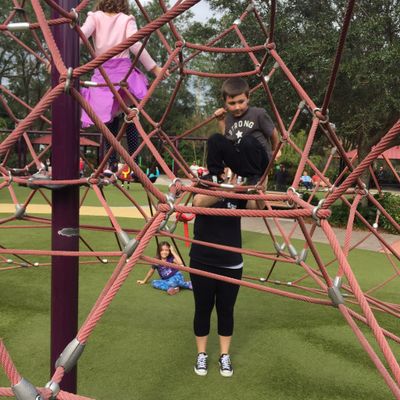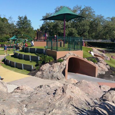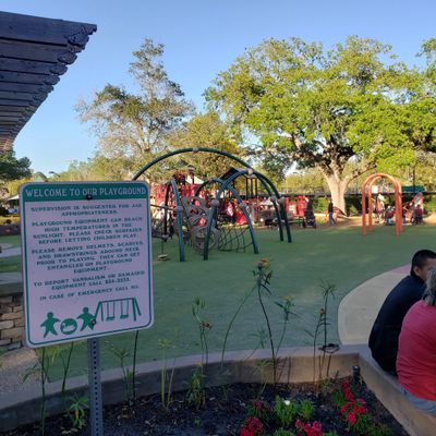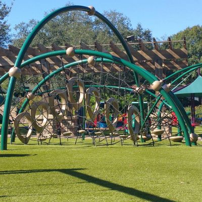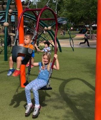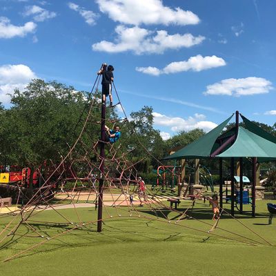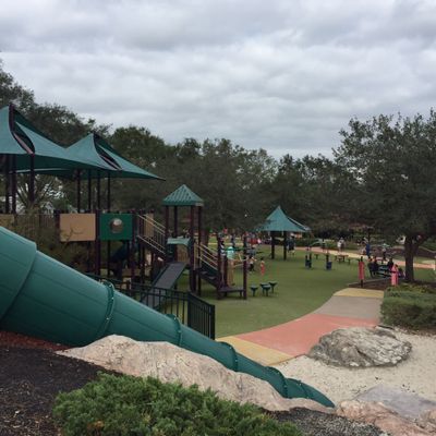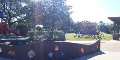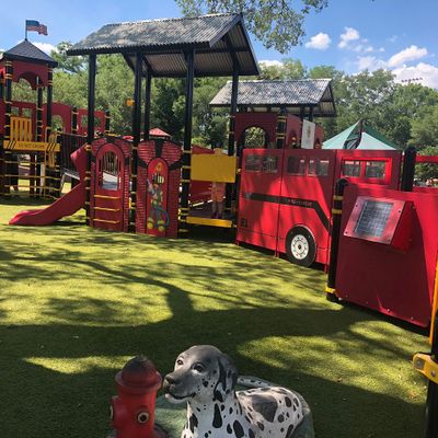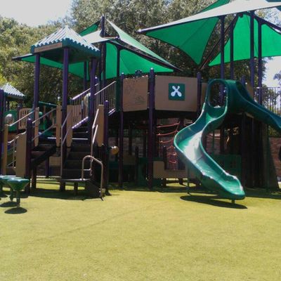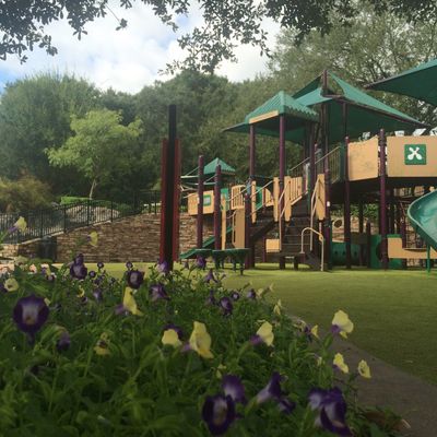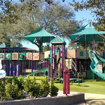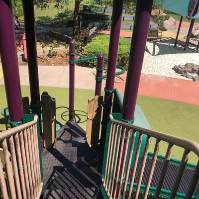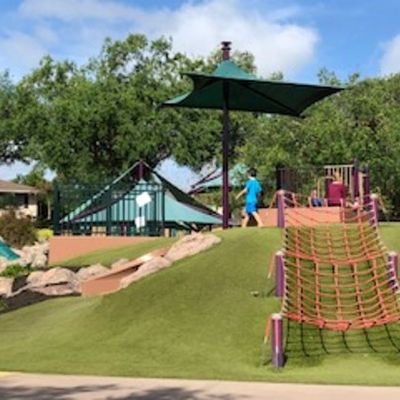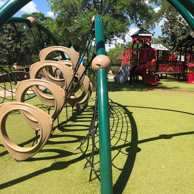 Expansive and inclusive public playground designed for children of all ages and abilities. It features a variety of well-maintained play areas, including equipment for toddlers, older children, and those with physical or learning challenges.