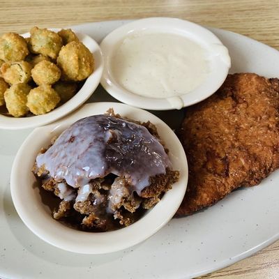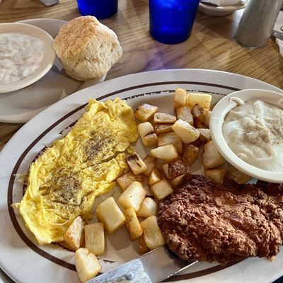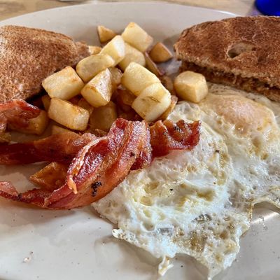 Casual restaurant serving breakfast, lunch, and dinner, with reasonably priced portions and generally friendly service; however, some inconsistency in food temperature and service has been noted.