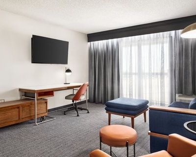 The atmosphere is functional and modern, tailored for travelers needing a place to recharge. It offers a straightforward, professional setting suitable for business trips or extended stays.ambiance_potoo