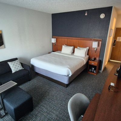 Guests appreciate the friendly staff and clean, modern lobby, though some noted issues with a non-functional hairdryer and poor Wi-Fi connectivity for BonVoy members. Some visitors also reported significant noise disturbances from a nearby sports bar late at night.reviews_potoo