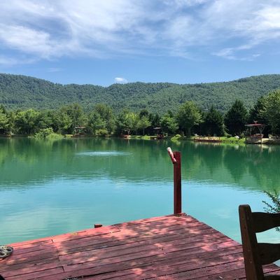 Crab Creek Catfish Pond offers a unique and eclectic fishing experience. Visitors can enjoy a scenic mountain view while fishing in a well-stocked pond.