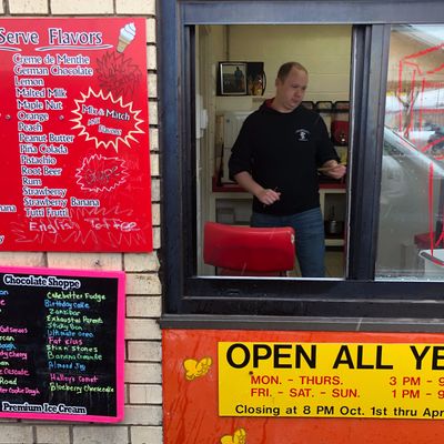 Family-owned drive-thru and walk-up spot known for its delicious popcorn, ice cream (including Chocolate Shoppe brand), and friendly service.