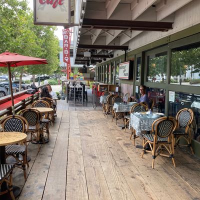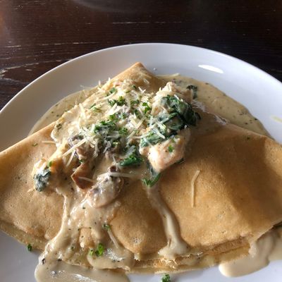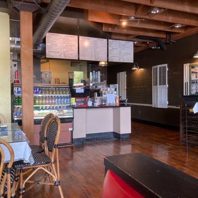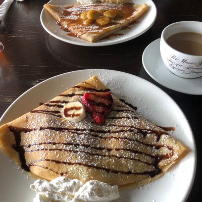 Spacious French crepe restaurant with a bistro atmosphere offering a wide variety of sweet and savory crepes, salads, and sandwiches, also featuring outdoor seating.