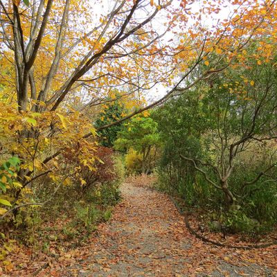 Beautifully maintained formal English garden featuring a wisteria-covered pergola and a variety of seasonal blooms. This peaceful oasis offers quiet spots to sit and enjoy nature, with pathways winding through formal and native plantings.