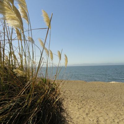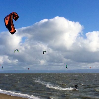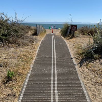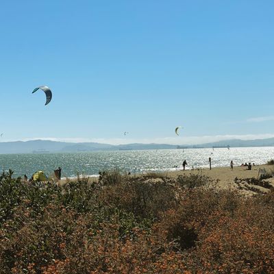 Long, sandy stretch along the bay offering expansive views of the San Francisco skyline. It features a popular walking path, open grassy areas with picnic tables, and is a notable spot for kite surfing and bird watching.