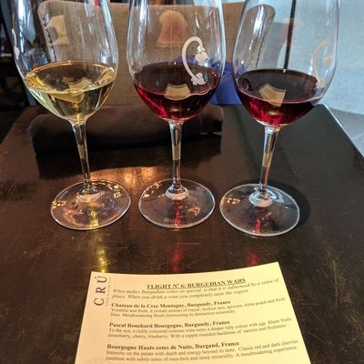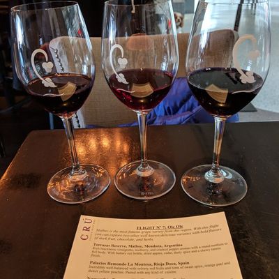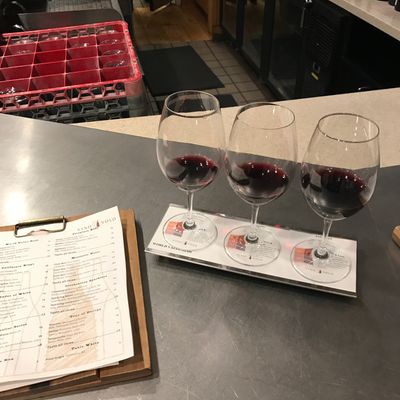 Airport wine bar with a sophisticated ambience offering American cuisine, wine flights, and small plates like flatbreads and pizzas.