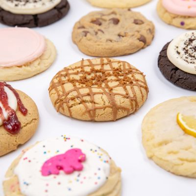 Chain bakery offering a rotating selection of gourmet cookies, with limited flavor choices each week; some find the lack of options frustrating, others praise the deliciousness and friendly service.