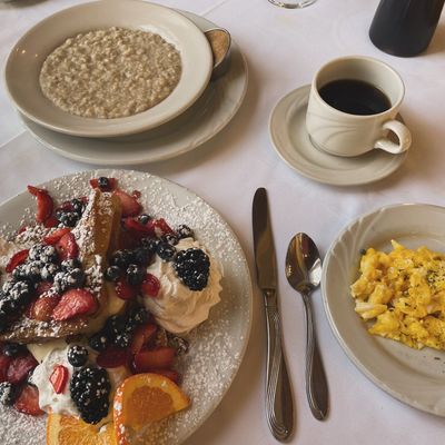 Historic hotel restaurant with American cuisine, offering breakfast buffets and à la carte dinners, known for its beautiful setting and generally good service but with inconsistent food quality.